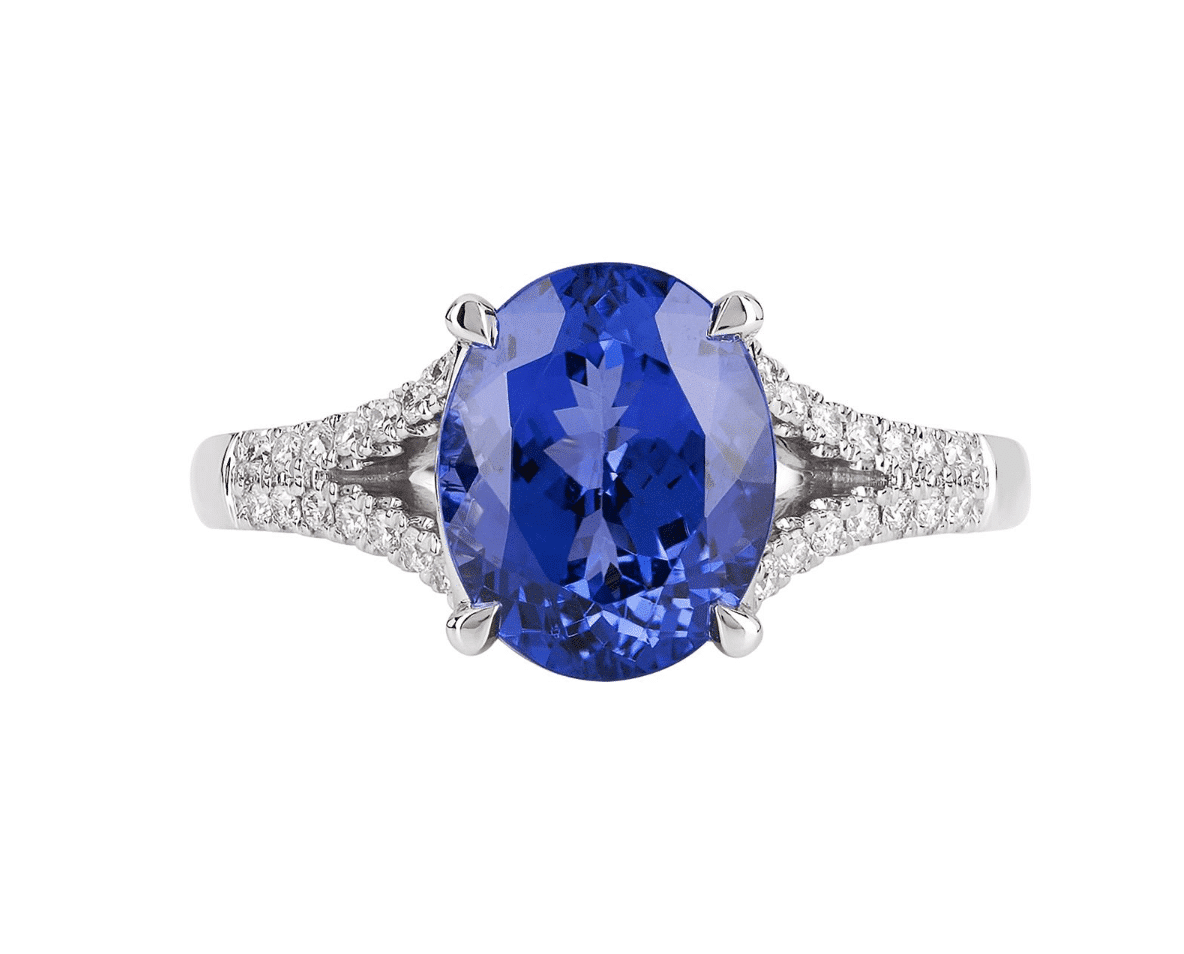 18ct White Gold Ring set with a natural 2.91ct natural Tanzanite and 27 = 0.18ct G/SI Diamonds.